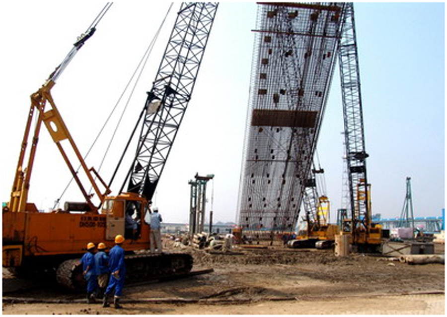 工程簡介:泵房地下部分施工時基坑深度約16-17m,屬于深基坑施工。為保證泵房地下部分施工順利進(jìn)行,泵房的外邊墻設(shè)為地下連續(xù)墻結(jié)構(gòu),地下連續(xù)墻頂標(biāo)高2.0m,底標(biāo)高約-24.6m,厚度1.0m。連續(xù)墻在泵房施工期間是基坑的支護(hù)結(jié)構(gòu),在運(yùn)行期間是泵房地下部分結(jié)構(gòu)的一部分。