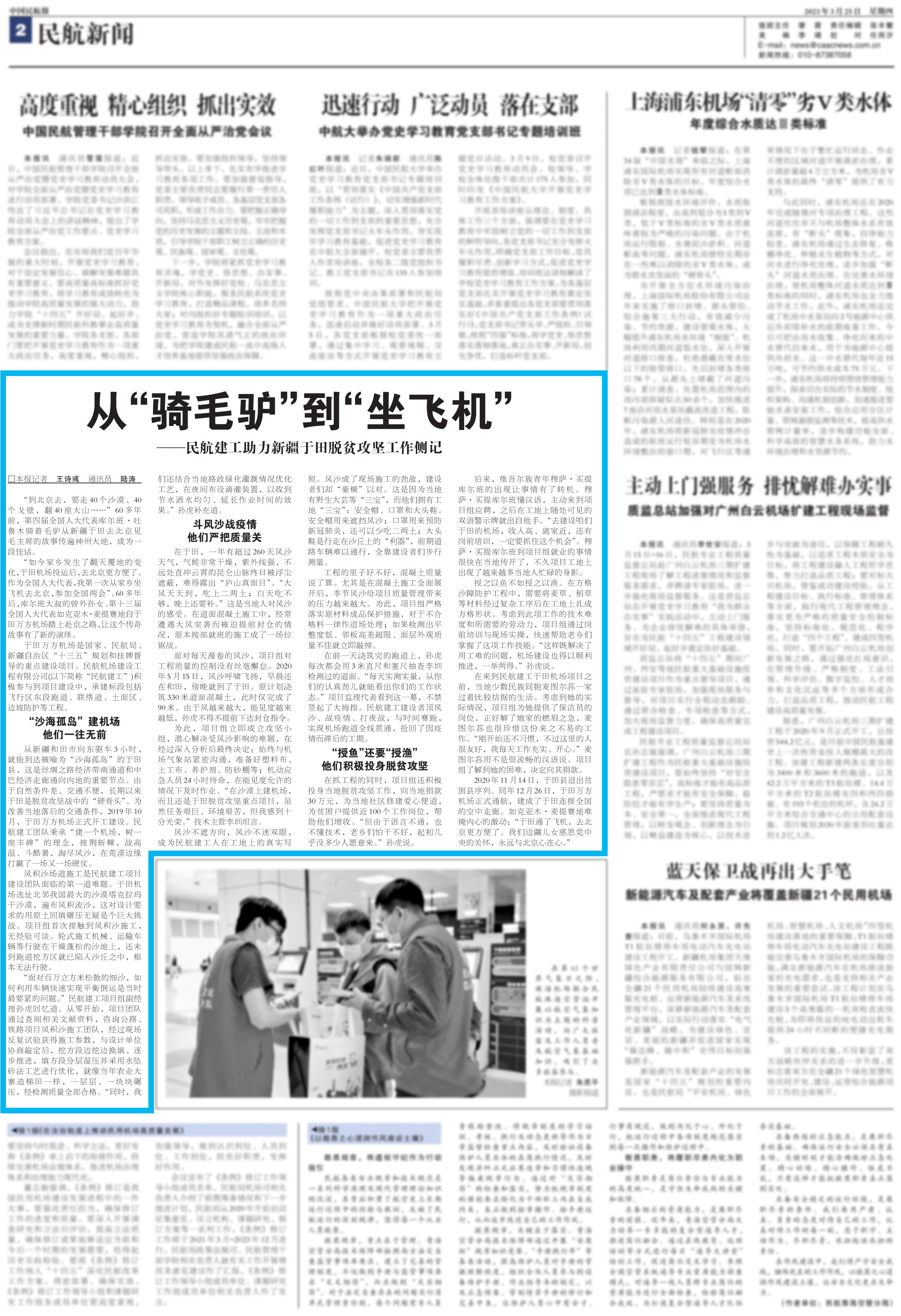 3月25日,《中國(guó)民航報(bào)》第6186期二版以《從“騎毛驢”到“坐飛機(jī)”——民航建工助力新疆于田脫貧攻堅(jiān)側(cè)記》為題,對(duì)公司助力新疆于田萬(wàn)方機(jī)場(chǎng)項(xiàng)目施工建設(shè),積極投身當(dāng)?shù)孛撠毠?jiān)工作,促進(jìn)當(dāng)?shù)亟?jīng)濟(jì)社會(huì)事業(yè)快速發(fā)展的事跡進(jìn)行了專題深度報(bào)道。