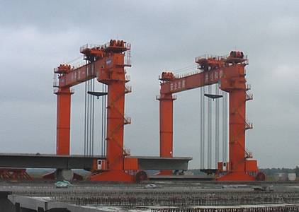 鐵路施工設(shè)備:我公司擁有一套鐵路橋梁施工機械,包括2臺MG450輪軌式提梁機、1臺TE900輪胎式運梁車及1臺LG900H輔助導(dǎo)梁式架橋機。