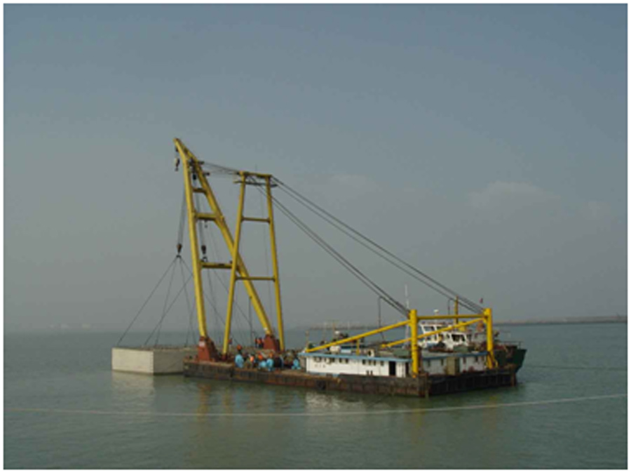 竣工時間:2010-10-16 工程簡介:沉箱下水滑道總長190.02米為斜坡重力式拋石堤結(jié)構(gòu),上部為預(yù)制安裝井字梁;沉箱出運碼頭總長59.96米,為重力式方塊結(jié)構(gòu);15萬噸級散貨泊位總長366.84米,為重力式沉箱結(jié)構(gòu)。