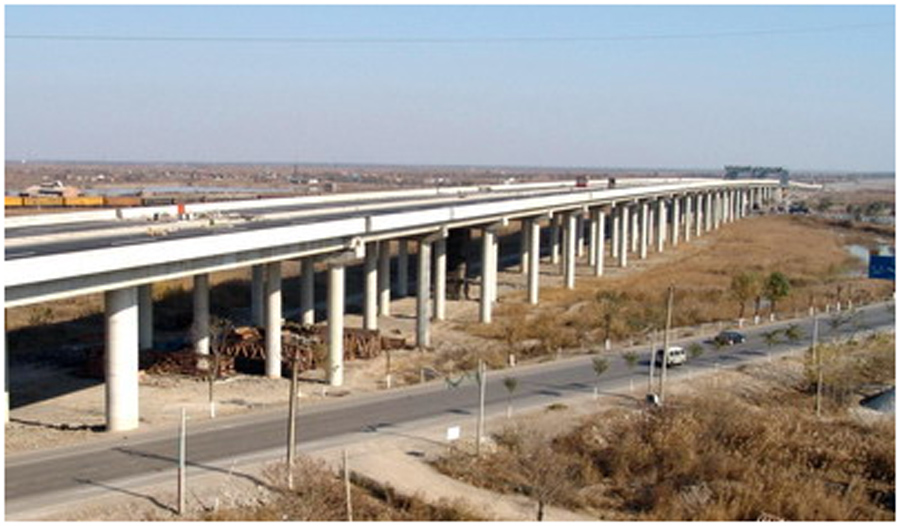 pre-stressed concrete has 28 spans in total, and the largest span is 44m; there