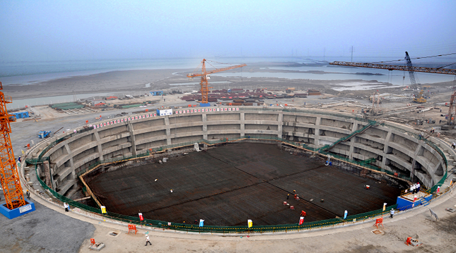黃驊電廠一期工程排水口工程中的排水管溝采用沉埋法施工。排水管溝先在干塢里制作完成需沉放的管溝段,管溝段兩端用臨時封墻密封,待混凝土強度達到設計強度后浮運到排水管溝址位置,并沉放管段。待沉放完畢后再恢復南大堤。