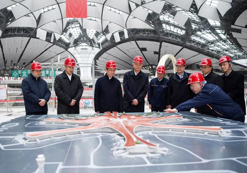 韓正表示,大興機場已進入施工關(guān)鍵期、沖刺期,要在確保安全生產(chǎn)的前提下,嚴(yán)把施工質(zhì)量,發(fā)揚工匠精神,精益求精,爭創(chuàng)一流,讓工程經(jīng)得起歷史檢驗。