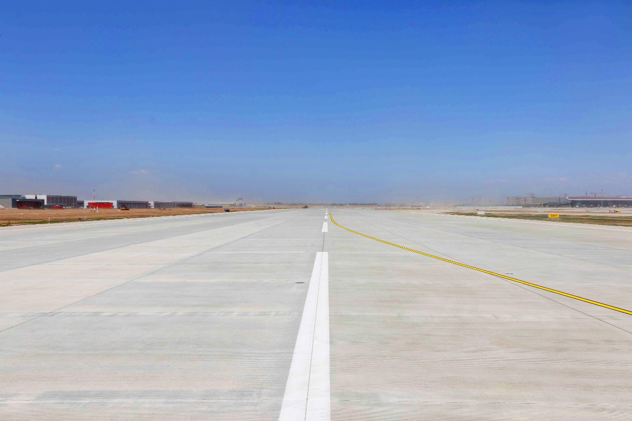 據(jù)悉,場道三標(biāo)占地約170萬平方米,主要施工內(nèi)容為飛行區(qū)西一、西二部分跑道、排水、服務(wù)設(shè)施,場區(qū)土面區(qū),下穿通道等。本次驗收的道面工程61.2萬平方米,排水工程10598.5米。