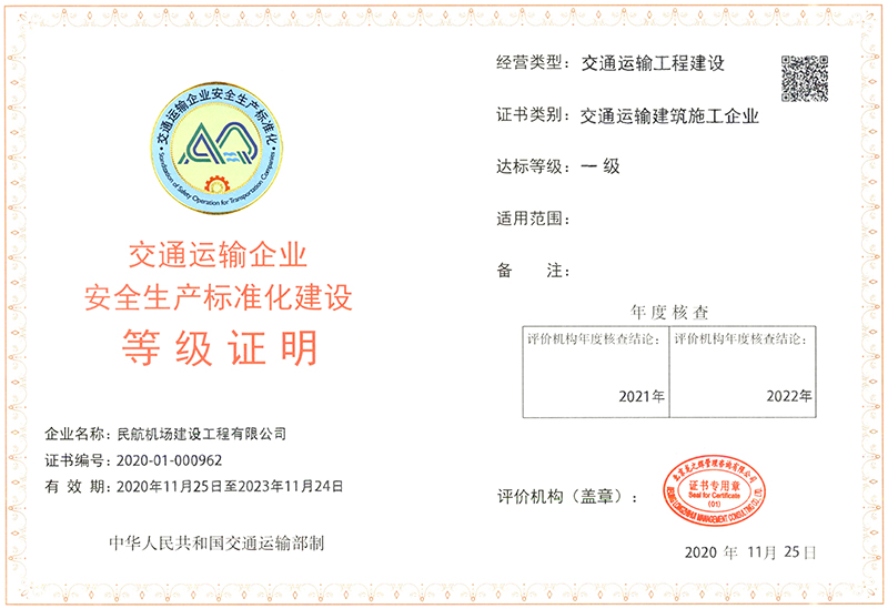 交通運(yùn)輸企業(yè)安全生產(chǎn)標(biāo)準(zhǔn)化一級(jí)企業(yè)考評(píng)是交通運(yùn)輸部為大力推進(jìn)企業(yè)安全生產(chǎn)標(biāo)準(zhǔn)化建設(shè)而設(shè)立,考評(píng)內(nèi)容包括目標(biāo)與考核、管理人員和機(jī)構(gòu)、安全責(zé)任體系、風(fēng)險(xiǎn)管理、安全生產(chǎn)管理制度等方面,經(jīng)過(guò)評(píng)審和公示等流程,評(píng)選出近年來(lái)安全生產(chǎn)管理工作表現(xiàn)突出的建筑企業(yè),有效期3年。