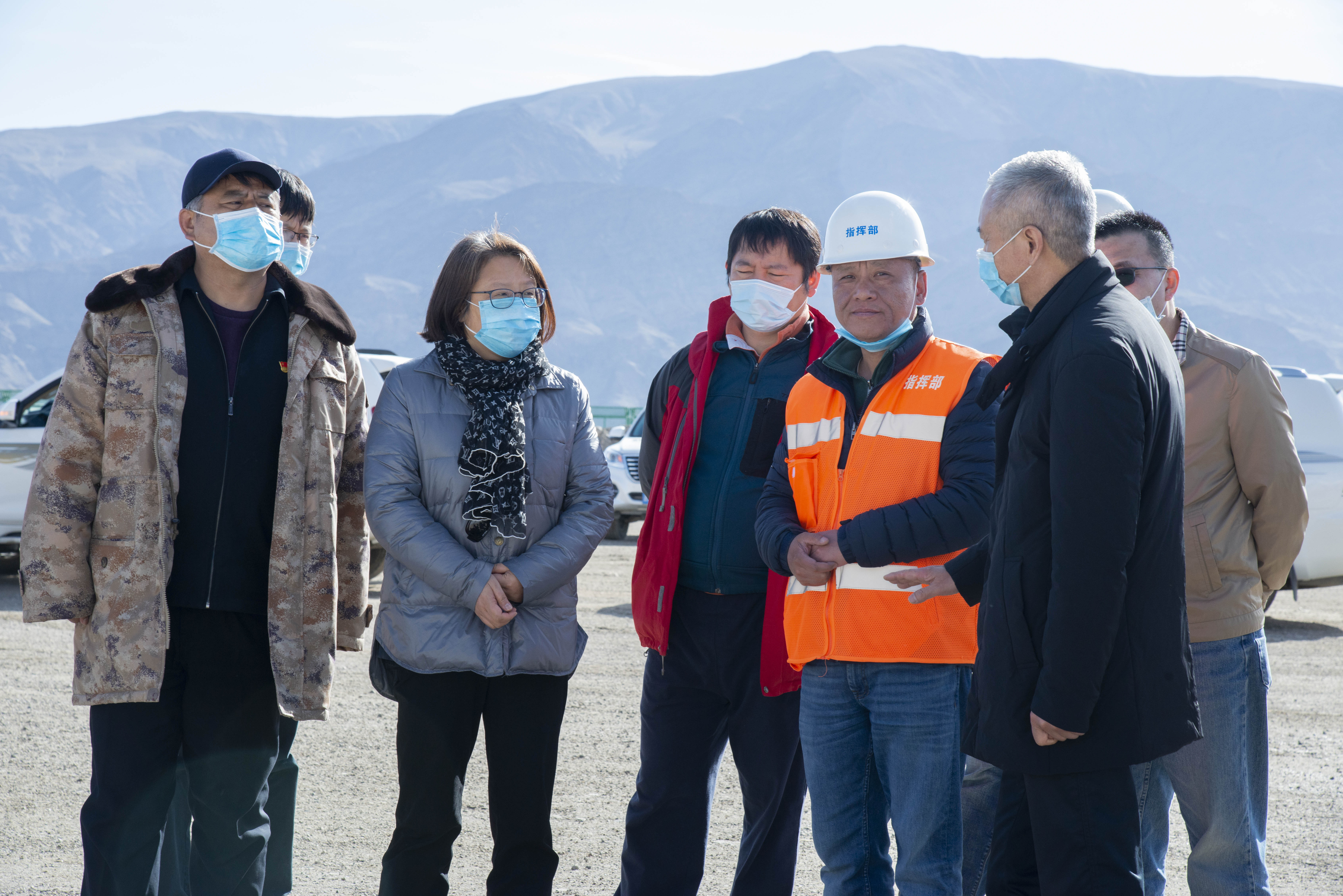 在施工現(xiàn)場(chǎng),張?jiān)犎×水?dāng)前施工進(jìn)展情況和項(xiàng)目總體進(jìn)展計(jì)劃,以及本年度施工總體部署和防疫物資儲(chǔ)備等情況匯報(bào),對(duì)項(xiàng)目當(dāng)前取得的成績給予肯定。