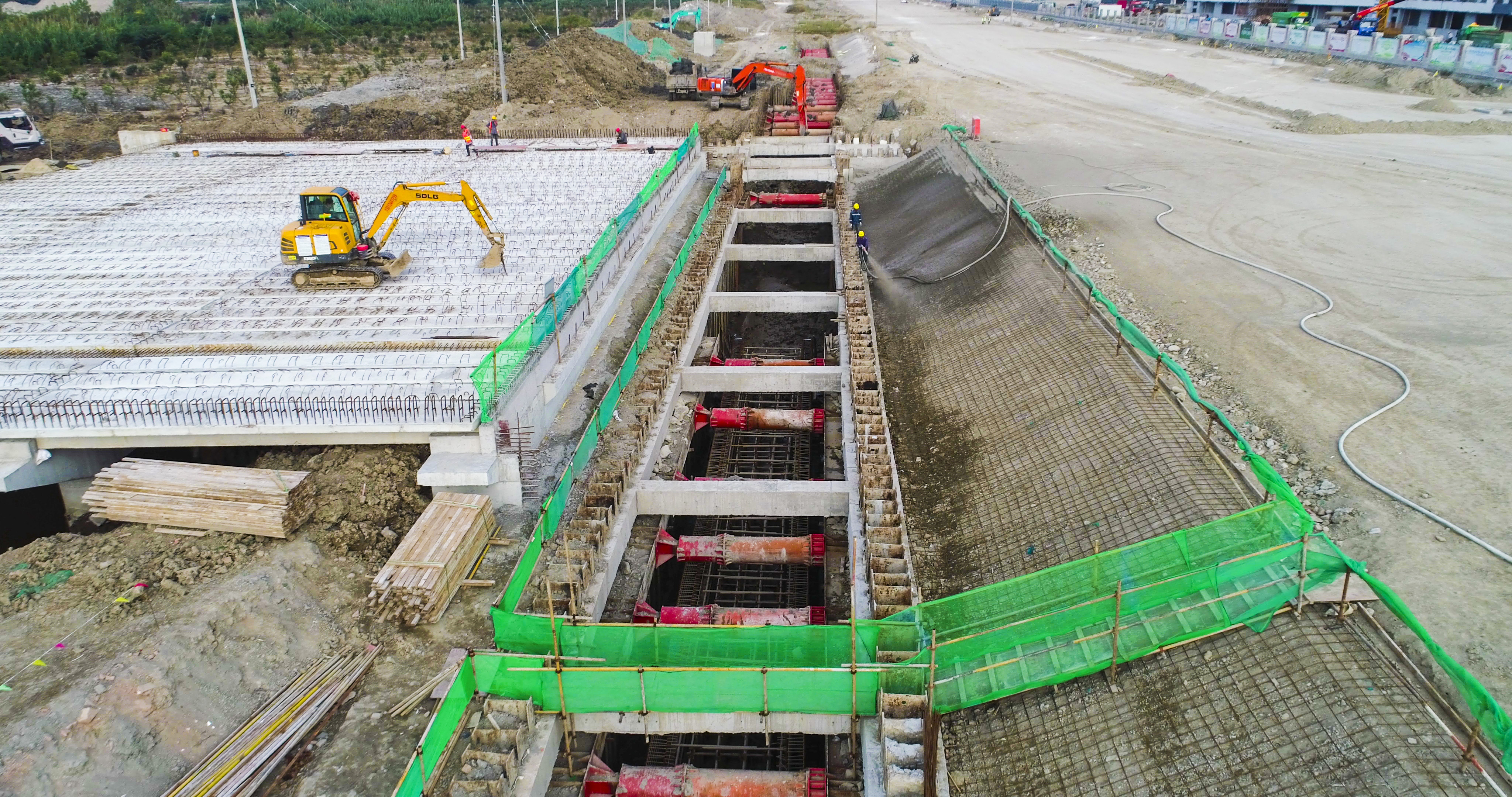 自開工建設(shè)以來,面對(duì)工期緊、戰(zhàn)線長(zhǎng)、天氣惡劣、新冠疫情等諸多困難,項(xiàng)目團(tuán)隊(duì)科學(xué)謀劃、倒排工期,加強(qiáng)過程策劃,明確安全生產(chǎn)責(zé)任,加強(qiáng)安全技術(shù)交底,同時(shí)開展勞動(dòng)競(jìng)賽,推動(dòng)綜合管廊各重要節(jié)點(diǎn)任務(wù)按期完成,成功攻克了基坑開挖深度大、地下水位較高、地質(zhì)條件復(fù)雜、邊坡支護(hù)難度大、吊裝工程量大、安全風(fēng)險(xiǎn)高等多項(xiàng)難題,確保項(xiàng)目建設(shè)任務(wù)如期完成。