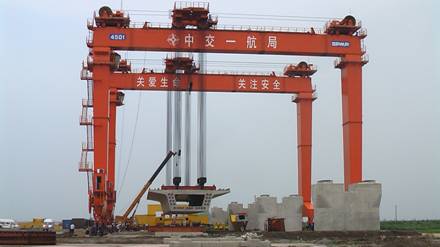 鐵路施工設(shè)備:我公司擁有一套鐵路橋梁施工機械,包括2臺MG450輪軌式提梁機、1臺TE900輪胎式運梁車及1臺LG900H輔助導(dǎo)梁式架橋機。
